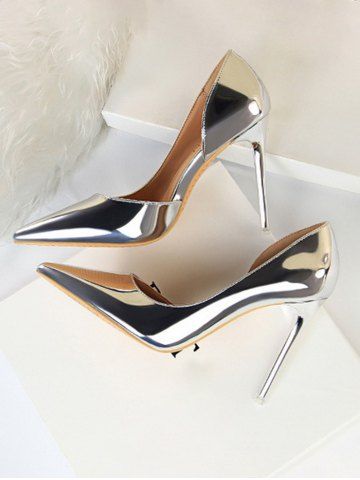 Pointed Toe High Heel Pumps - Silver - Eu 38