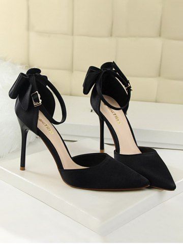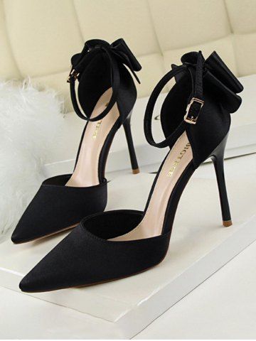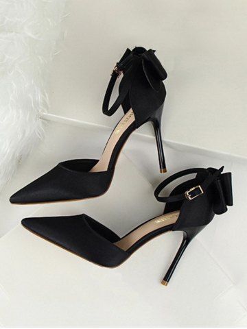 Silky Satin Bow Detail High Heeled Pointed Toe Pumps - Black - Eu 38