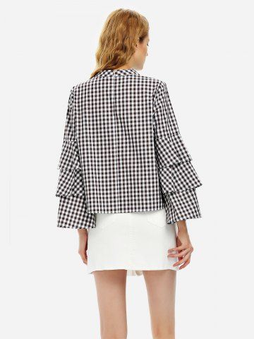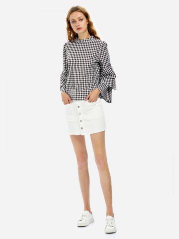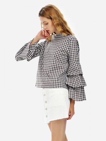 ZAN.STYLE Bell Sleeve Plaid Blouse Shirt - White And Coffee - M