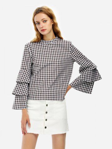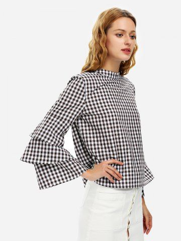 Women > ZAN.STYLE Bell Sleeve Plaid Blouse Shirt
