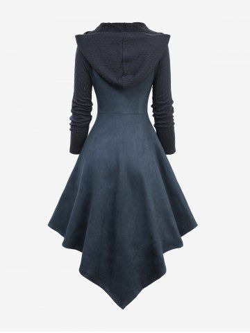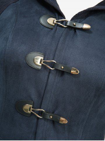 Cable Knit Patchwork Buckle Asymmetrical Hooded Coat - Deep Blue - S