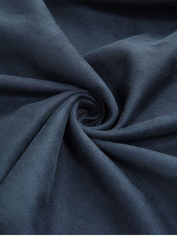 Cable Knit Patchwork Buckle Asymmetrical Hooded Coat - Deep Blue - M