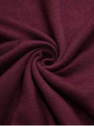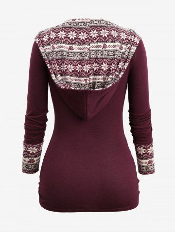 Ethnic Floral Print Ruched Asymmetrical Long Sleeves Hooded Top - Deep Red - Xl
