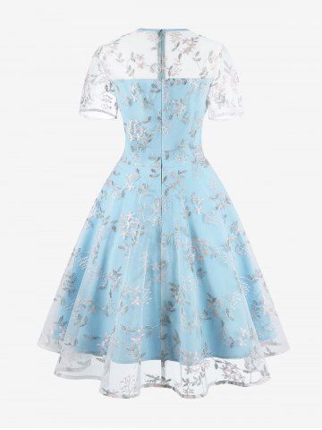 WOMEN > Flowers Leaves Embroidery Mesh Tie Zipper Keyhole Neck Vintage Dress