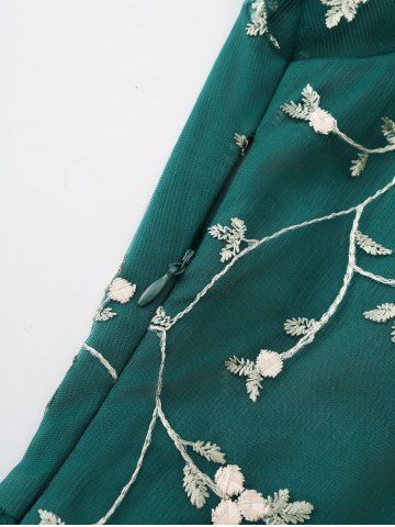 Lace Up Flowers Embroidery Mesh Vintage Dress - Green - M