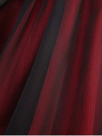 Lace Up Grommet Ruched Cold Shoulder Sheer Mesh Flare Sleeves Top - Black - Xxl