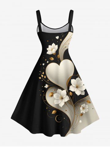 Women > Plus Size Flower Heart Print Valentines A Line Dress