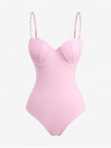 Shell Cup Chain Straps One Piece Swimsuit - Light Pink - Xl