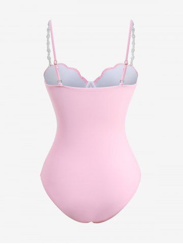 Shell Cup Chain Straps One Piece Swimsuit - Light Pink - Xxl