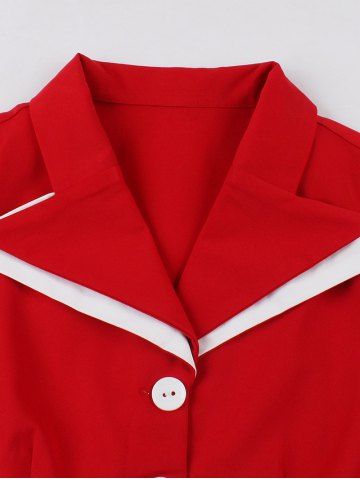 Two Tone Patchwork Buttons Pockets Lapel Collar Vintage Dress With Belt - Red - 2xl